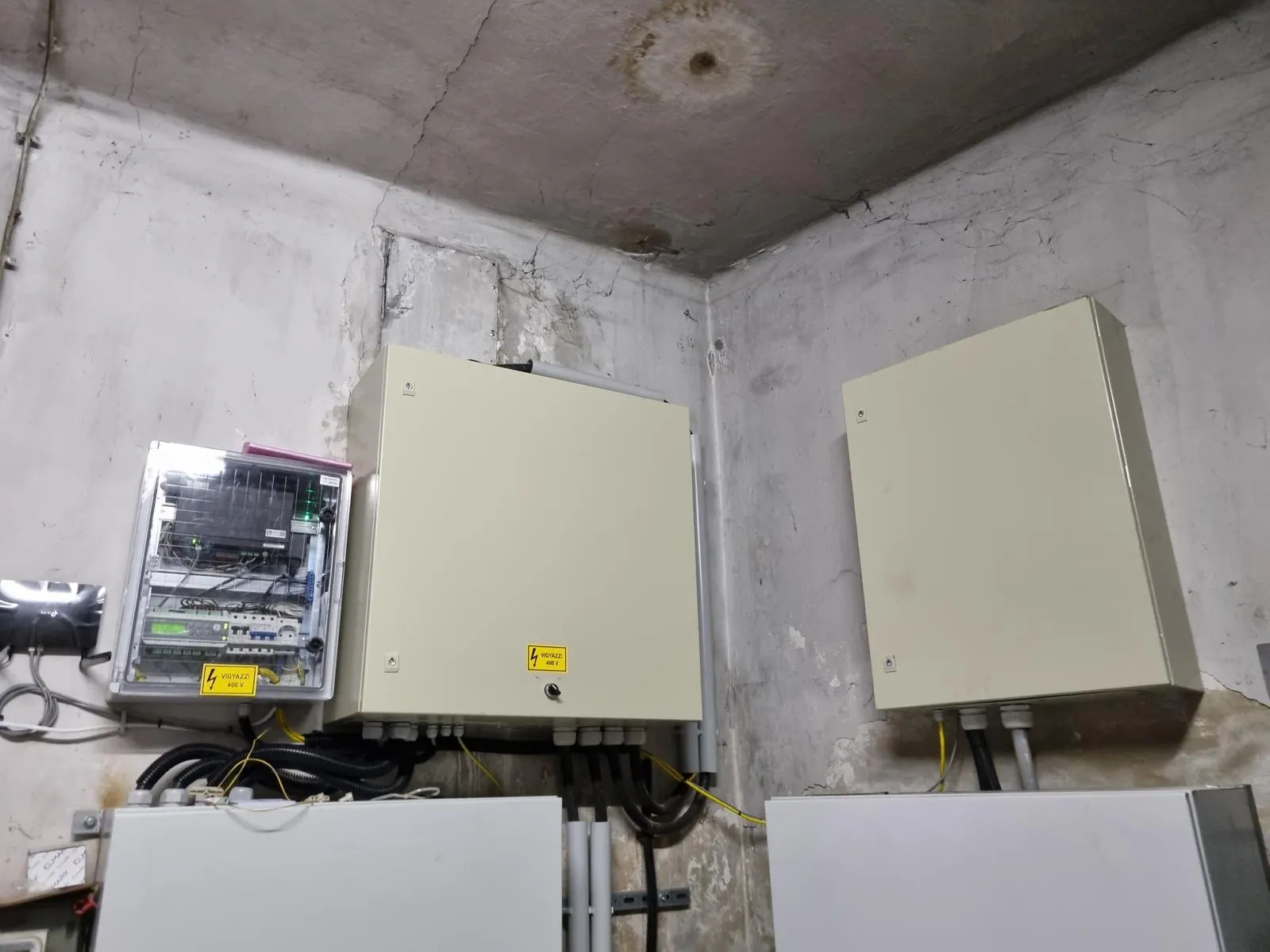Egyedi fémszerkezet és lapos tető, 2 villanyóra, osztott rendszer, Vissz-watt