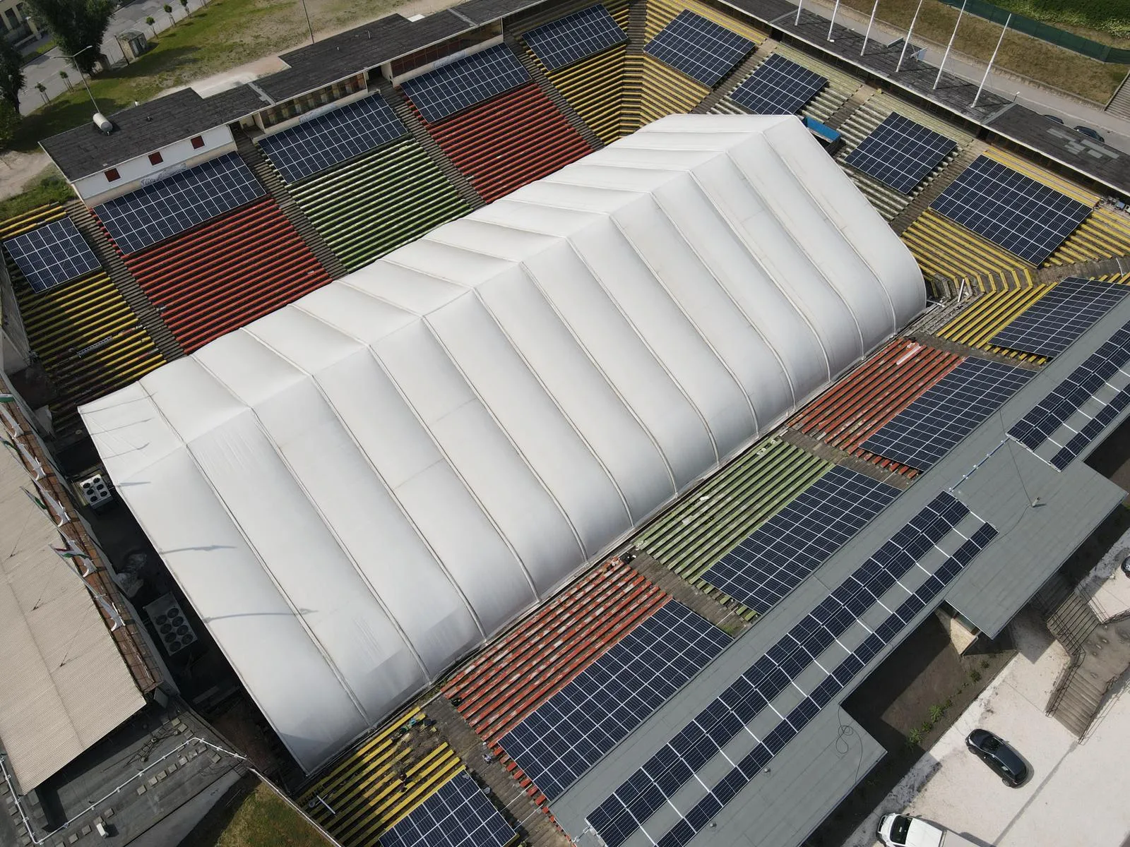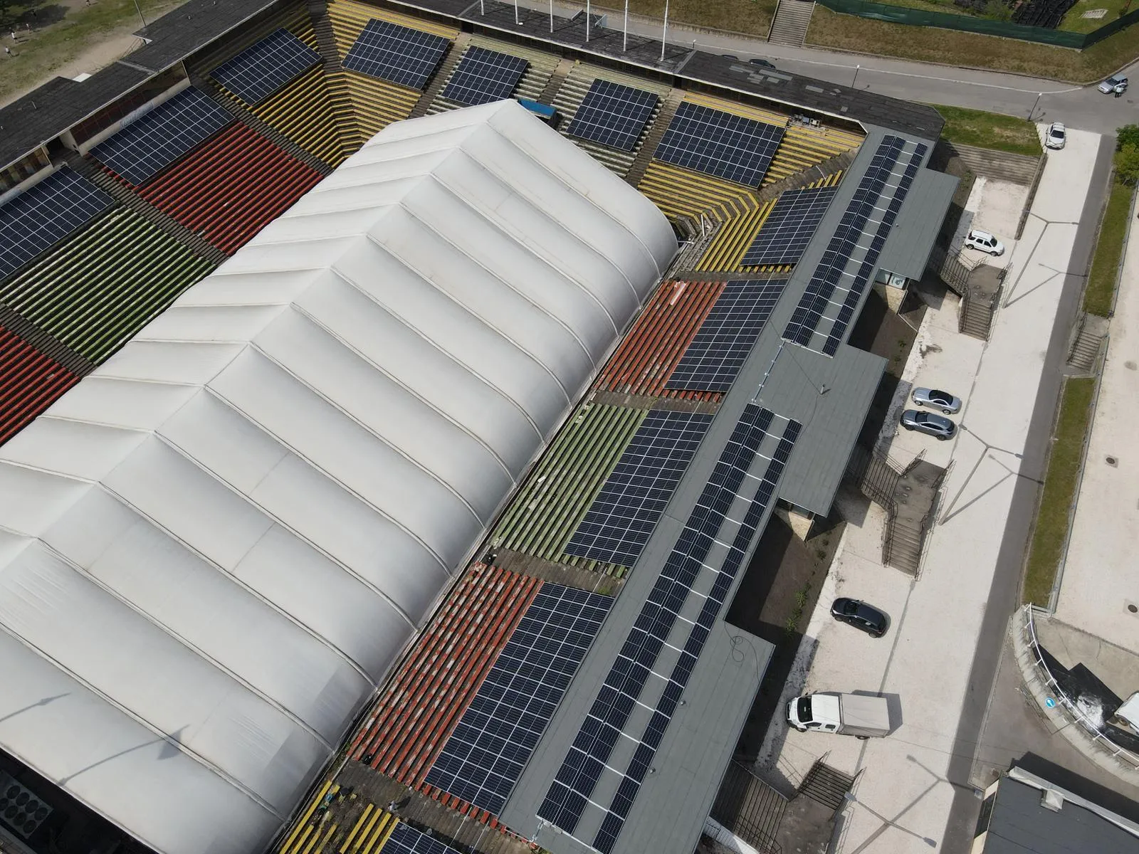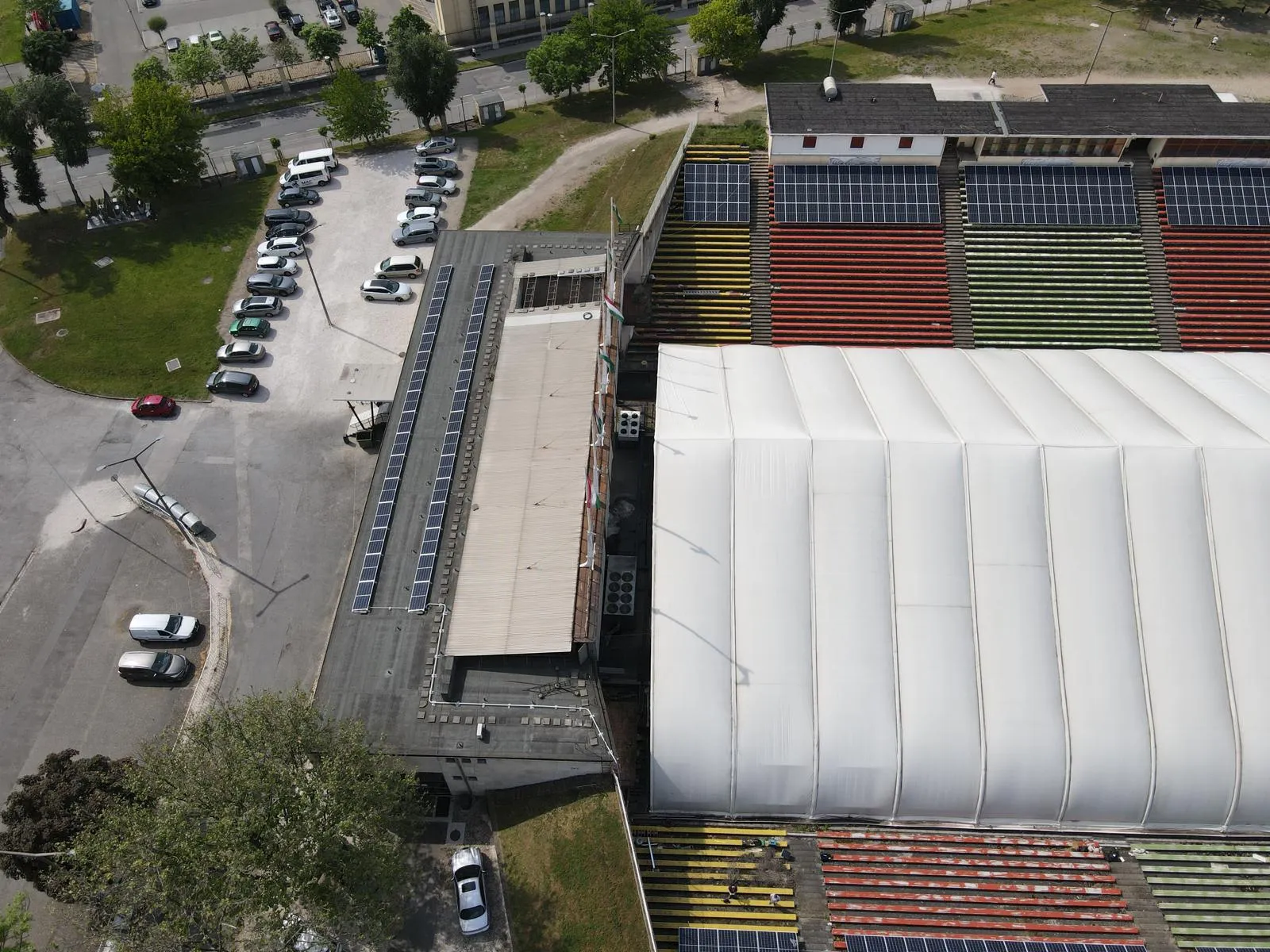 A MAC Budapest jégkorongcsarnok jelentős nappali energiaigényének fedezésére 200 kW teljesítményű, visszwatt-védelemmel ellátott napelemes kiserőmű létesült, Huawei inverterekkel és JA Solar napelemekkel.